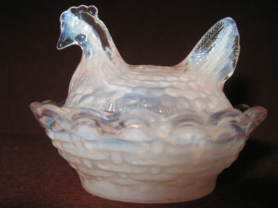 PINK MILK SLAG GLASS HEN / CHICKEN ON NEST DISH ROOSTER