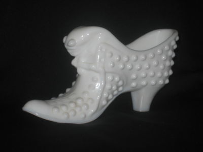FENTON HOBNAIL MILK GLASS WHITE CAT SLIPPER SHOE *MINT*