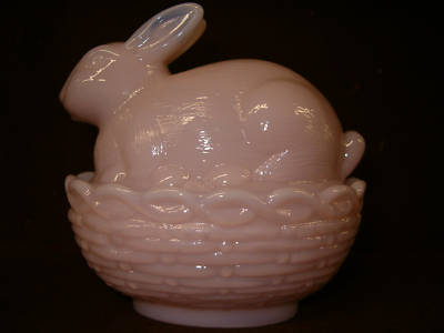 PINK MILK CROWN TUSCAN GLASS BUNNY RABBIT ON NEST DISH