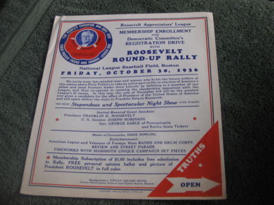 Title (ebay affiliate link): ROOSEVELT ROUND-UP RALLY BOSTON, OCTOBER 30, 1936