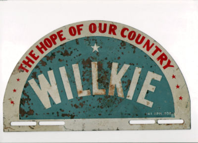 WENDELL WILLKIE license plate attachment 1940 campaign