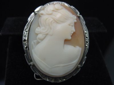 ANTIQUE STERLING MARQUSITE CAMEO PIN/PENDANT