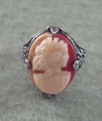 Antique Vintage Cameo Sterling Silver Ring Size 4