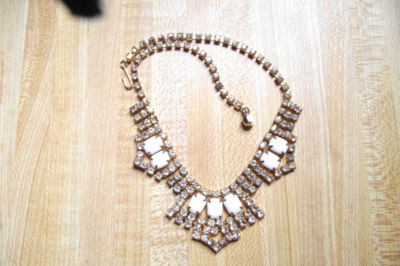 VINTAGE MILK GLASS RHINESTONE NECKLACE