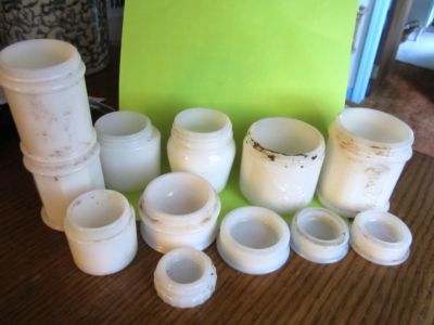 Lot of *12* (Dug) Old Milk Glass Jars-Medicinal