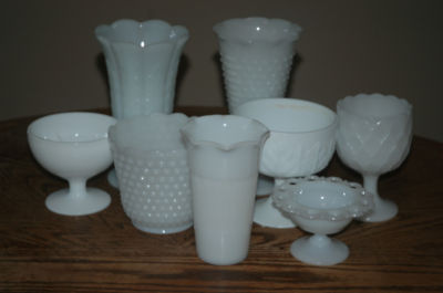 Vintage Lot of 8 Milk Glass Planters & Vases Hobnail ++