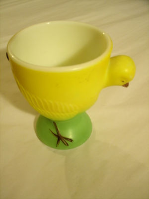 VINTAGE EGG CUP CHICKEN BABY CHICK MILK GLASS YELLOW
