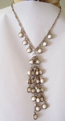 VINTAGE SILVER CHAIN NECKLACE W/ MILK GLASS BEADS
