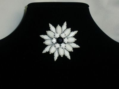 Vintage Milk Glass Rhinestone Japanned Starburst Pin