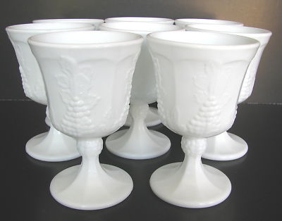 8 INDIANA COLONY MILK GLASS HARVEST GRAPE WATER GOBLETS