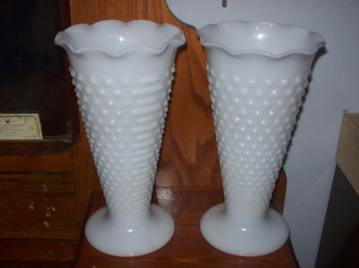 PAIR OF FENTON MILK GLASS VASE HOBNAIL