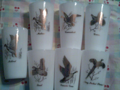 7 VTG Federal Glass Milk Tumblers 5" Gold Game Birds
