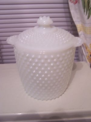 Antique Hobnail Milk Glass, Large Cookie biscuit Jar