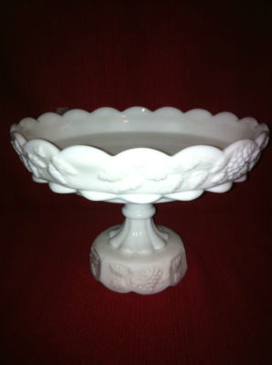 WHITE MILK GLASS GRAPE HARVEST CAKE COOKIE CANDY DISH