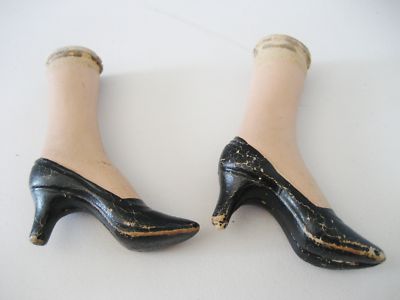 Antique BOUDOIR BED DOLL LEGS composition 3 1/4"