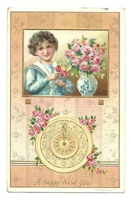 Antique New Year Post Card ~ Children ~ Clock ~ Tuck