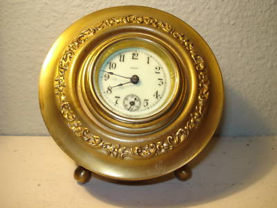 ANTIQUE ORNATE FRENCH BRASS FOOTED SHELF MANTLE CLOCK