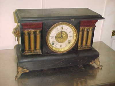 ANTIQUE GILBERT MANTLE CLOCK W/ LIONS HEADS