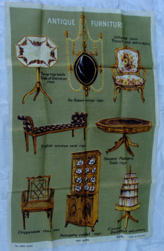 Title (ebay affiliate link): Vtg Ulster Irish Linen Tea Towel Antique Furniture