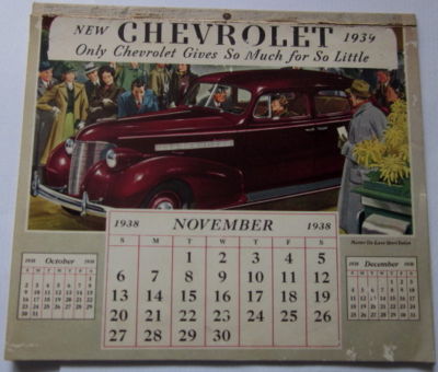 Title (ebay affiliate link): Chevrolet Calendar 1938-1939 Sales Brochure