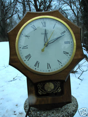 Antique Wood Art Glass Electric Wall Pendulum Clock