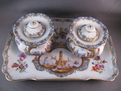 Title (ebay affiliate link): Rare Vintage Capo-di-monte Desk Set W/ Dual Inkwells NR