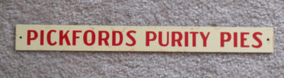 1940S THREE PICKFORDS PURITY PIES BAKERY TIN SIGNs