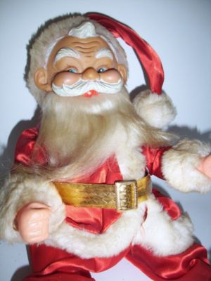 Title (ebay affiliate link): 16" Vtg Jointed Legs SANTA Plastic Face Satin Suit NICE