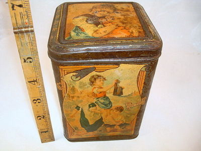 Victoriaon Children palying Biscuit Tin c1890s