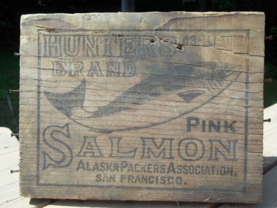 Antique Hunters Brand Pink Salmon Wood Crate Sign SF