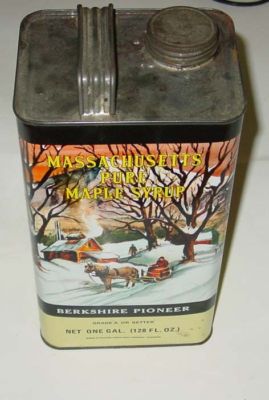 Maple Syrup Mass. MA advertising 1 gal tin litho 1950s