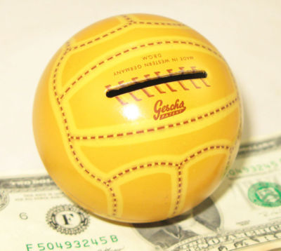 GERMAN TIN TOY MONEY BANK SOCCER FOOTBALL c1950