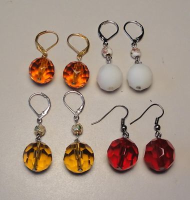 Vintage Lot 4 Glass Crystal Earrings Red Orange Milk