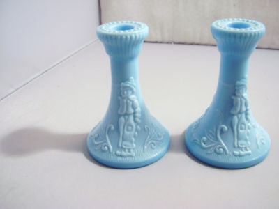 Westmoreland Ornate Blue Milk Glass Candlestick Holders