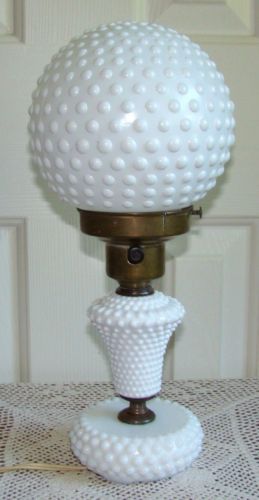 Vtg MILK Glass HOBNAIL Table LAMP Rare GLOBE Shade OLD