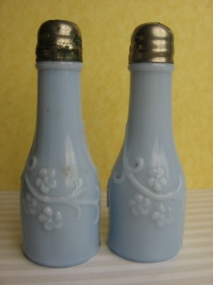Vintage Blue Milk Glass Floral Salt & Pepper Shakers!