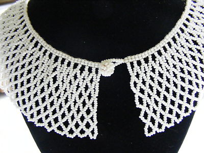 Vintage beaded dress collar milk glass seed beads