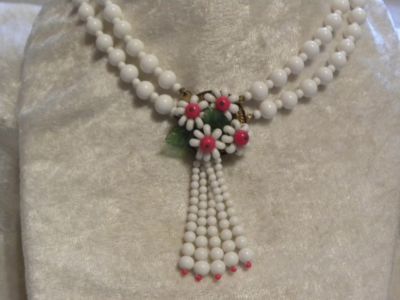 GORGEOUS VINTAGE HAND WIRED MILKGLASS NECKLACE - JAPAN