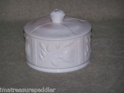 Jeannette Shell Pink Stipple Rose Milk Glass Powder Jar