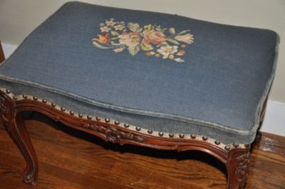 Title (ebay affiliate link): Large Antique Embroidered Stool with Rosewood Accents