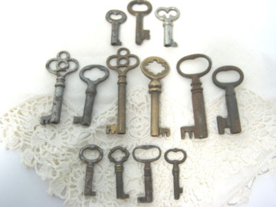 13 Antique OLD Skeleton Cabinet Furniture Keys