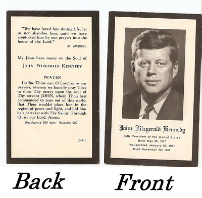 Title (ebay affiliate link): John F Kennedy Memorial Prayer Card VINTAGE Set of 2