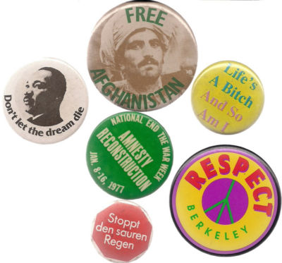 Title (ebay affiliate link): lot of 6 political/anti war pinbacks 1970-2000