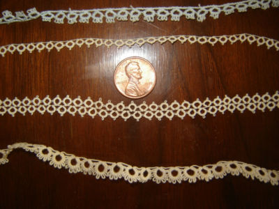 Tiny 1/8"-1/4" cotton hand tatted lace trims - dolls