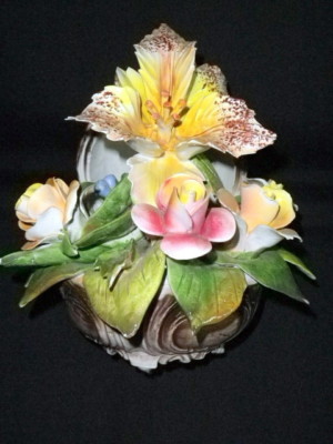 CAPODIMONTE FLOWER FLORAL CLAM SHELL BASKET