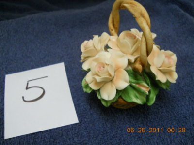 Capodimonte Pink Roses in Basket Italian Porcelain