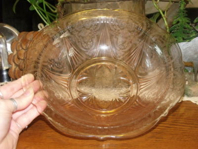 Title (ebay affiliate link): VTG HAZEL ATLAS PINK GLASS ROYAL LACE ROSE SERVING BOWL