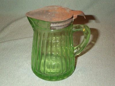 Title (ebay affiliate link): Green Depression VASELINE Glass SYRUP PITCHER w/Lid