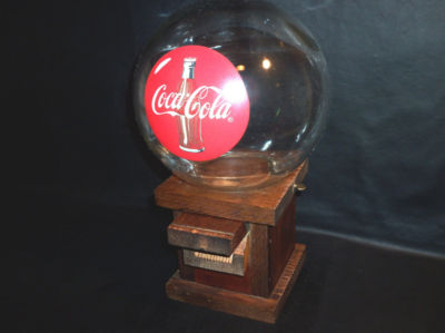 Coca-Cola Glass Globe Wood Base Peanut Dispenser