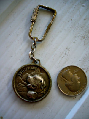 Title (ebay affiliate link): VTG silver medal Switzerland map rescue dog keychain